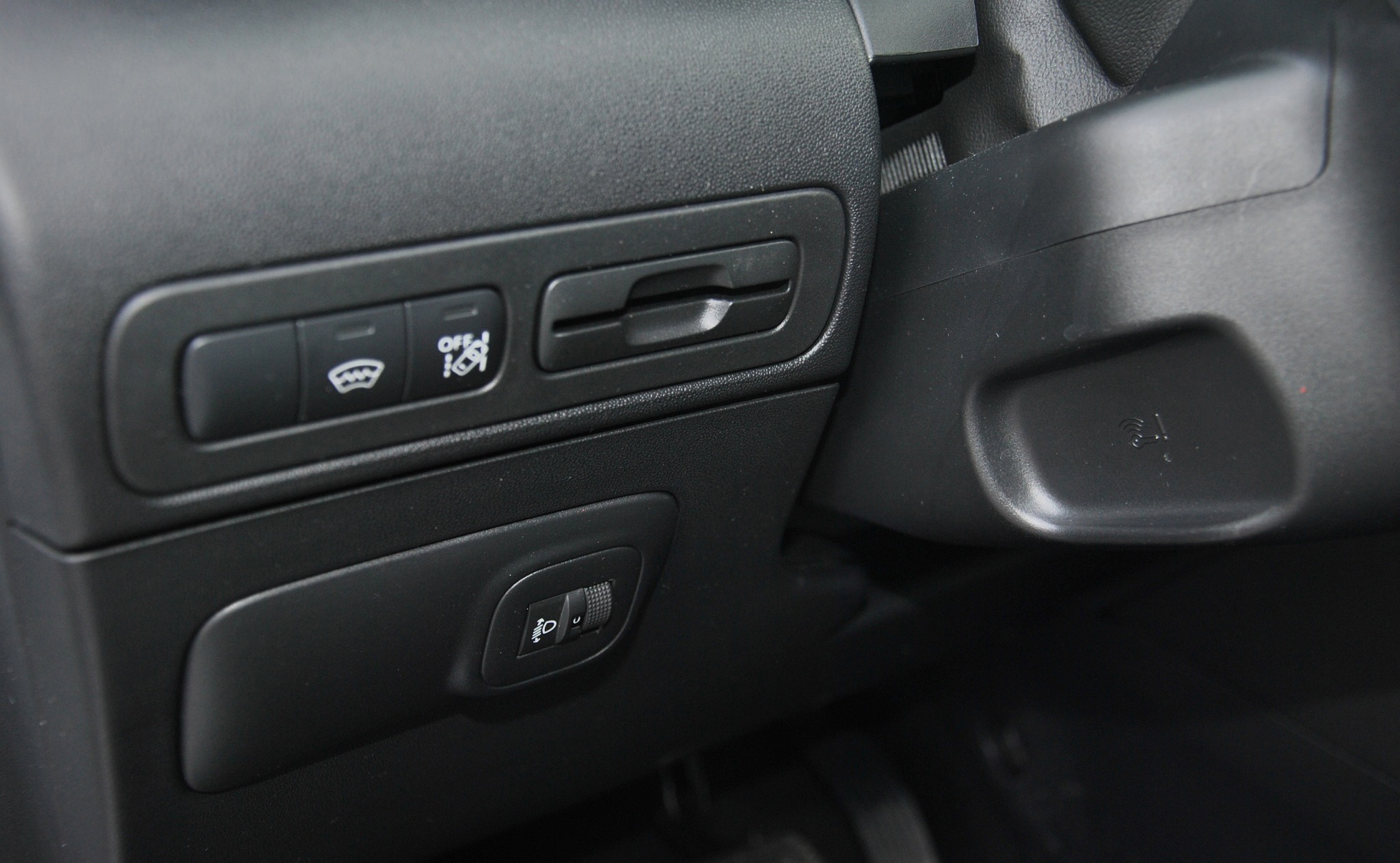 Как и положено семейному автомобилю, внутри довольно много отделений для мелкой поклажи. В Citroen C3 Aircross приличный перчаточный ящик, отсек между сиденьями, ниша в центральной панели и немаленькие карманы в дверях. Слева от руля – отверстие для хранения пластиковых карт.